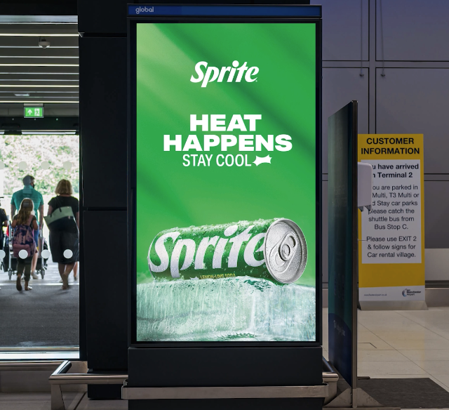 These were tactical copy driven DOOH in airports in arrival zones that played on heated moments in airplanes for Sprite. Heat Happens. Stay Cool.